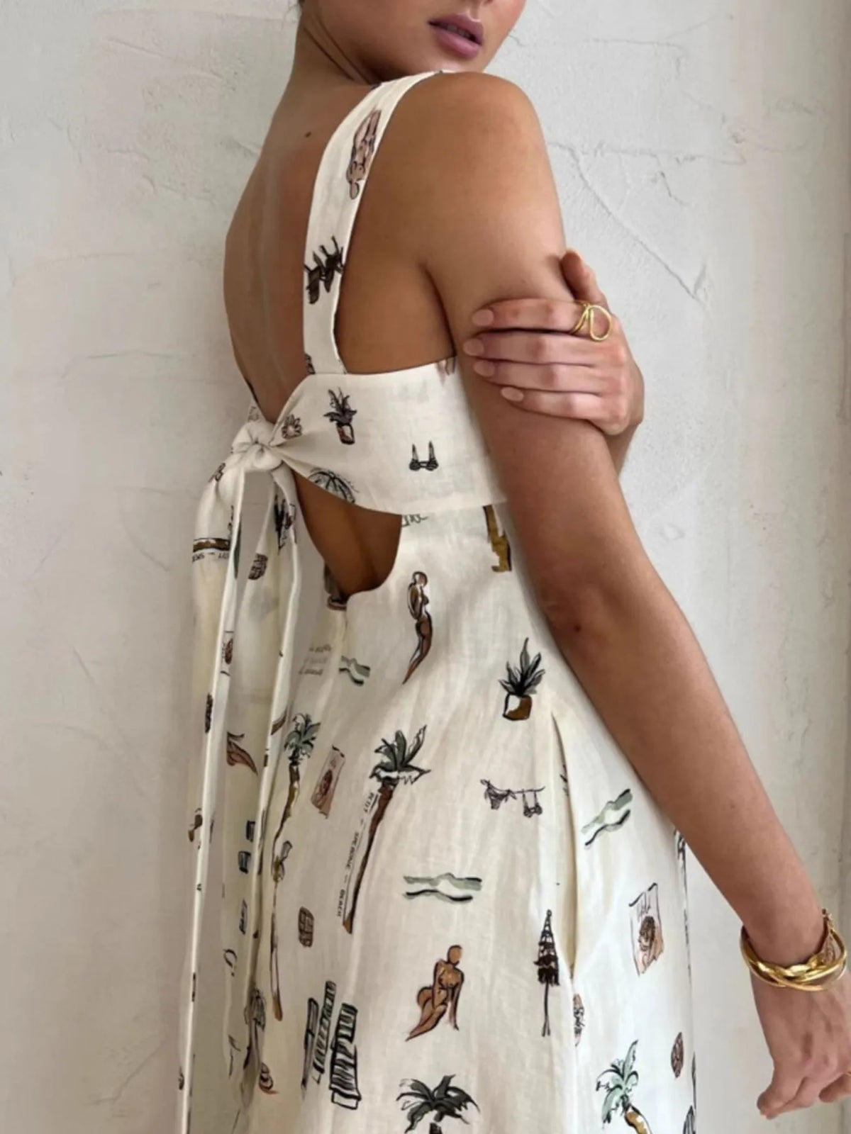 Printed Square Neck Maxi Cami Dress with Pocket