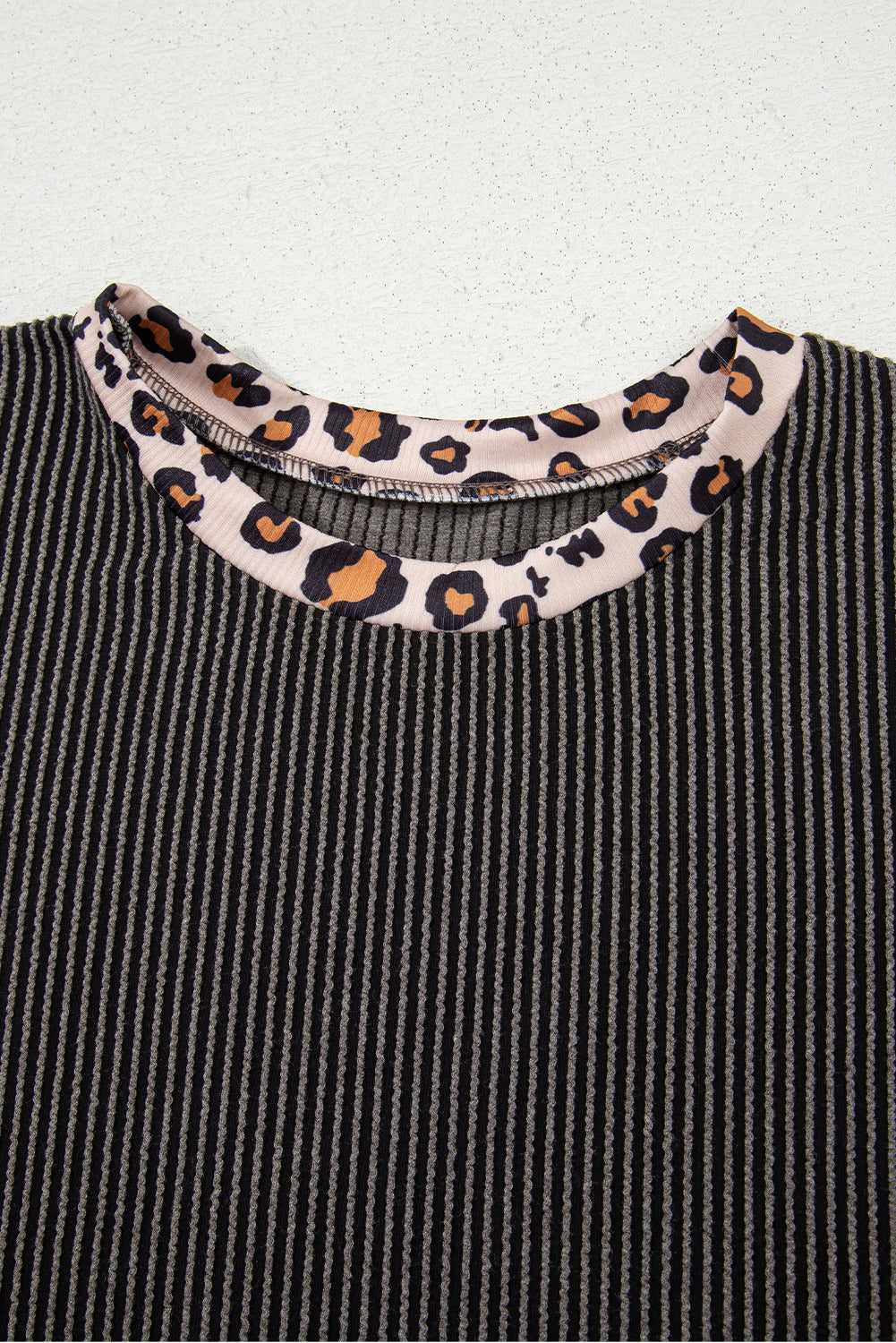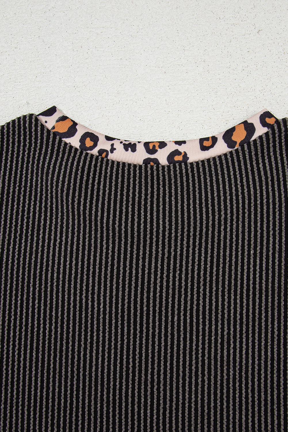 Carbon Grey Leopard Patchwork Edge Twisted Rib T Shirt and Cropped Pants Set