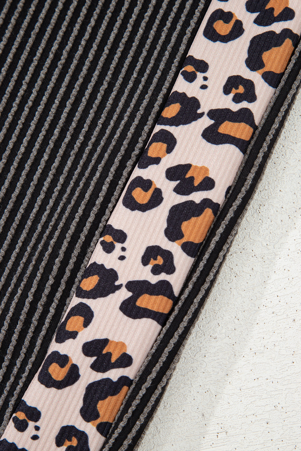 Unique patchwork design with a twist and wild vibe. Trendy leopard print detail adds a chic detail. Comfortable twisted rib fabric is elastic and textured. Stylish cropped pants in a straight loose fit.
